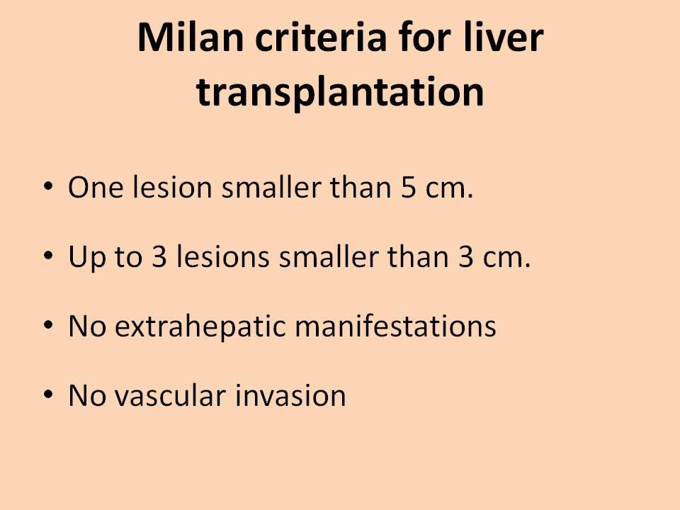 Milan Criteria - Liver Transplantation For Hepatocellular Carcinoma A Model Including A Fetoprotein Improves The Performance Of Milan Criteria Gastroenterology : In transplantation medicine, the milan criteria are set of criteria applied in consideration of patients with cirrhosis and hepatocellular carcinoma (hcc) for liver transplantation with intent to cure their disease.